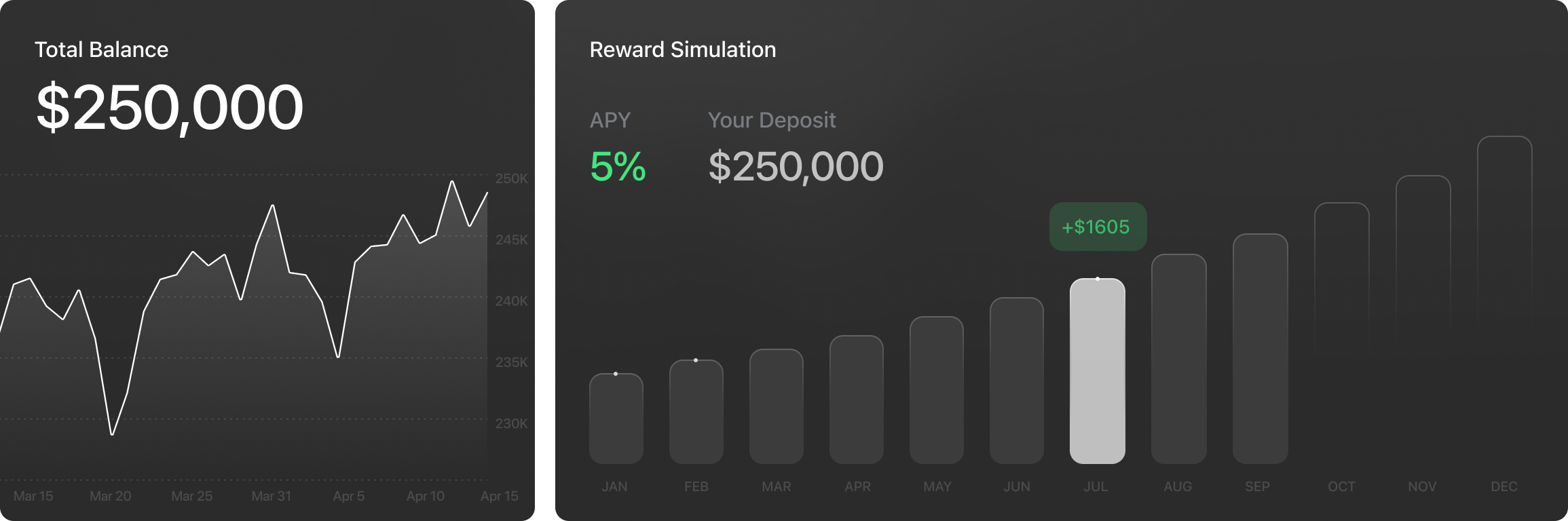 Convert unused cash into a reliable stream of 5%+ APY yields that compound daily. Your funds never leave your custody, giving you growth, security, and total ownership.